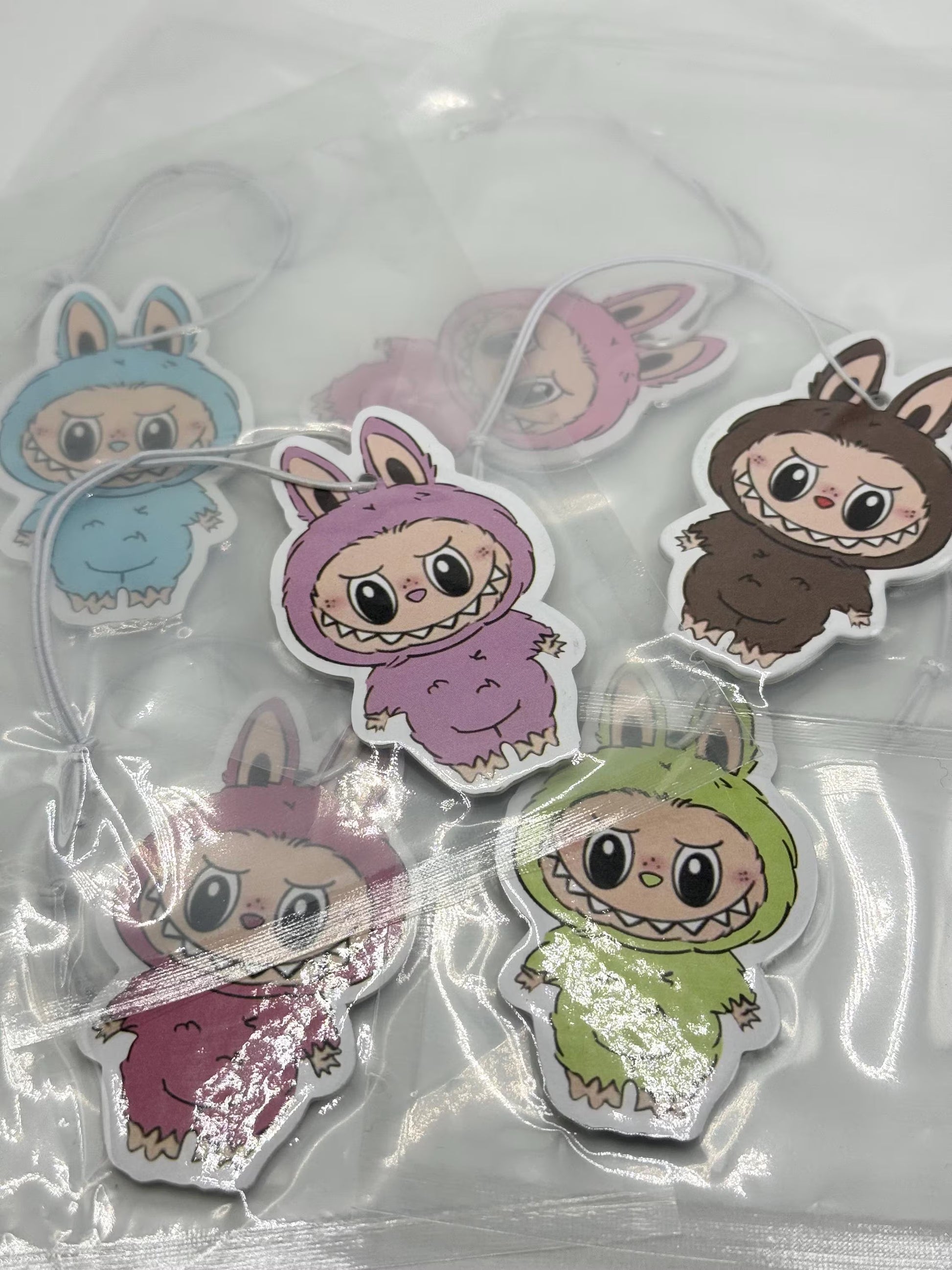 Freshen up your car, room, or locker with our monster-inspired air fresheners! Choose from 10 adorable designs featuring your favorite mischievous monster in playful poses. Each air freshener comes with a mild, pleasant scent—just enough to brighten your day without overwhelming your nose. Size is about 2-3 inches tall.